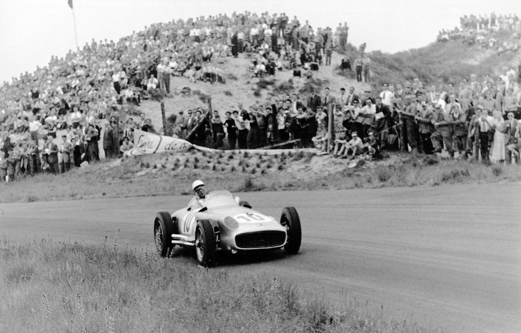 Nederland Grand Prix på Zandvoort 19 .juni 1955. Stirling Moss i en Mercedes-Benz W 196 R (startnummer 10).