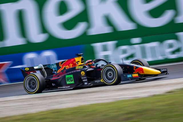 Dennis Hauger starter begge helgens løp fra 11. startposisjon, men i lørdagens sprintløp viste Aurskog-gutten at ikke det trenger å være noen hemsko. Unggutten fikk en god start og hadde allerede på den første runden avansert flere plasser. Da løpet ble restartet etter fire runder, etter at Amaury Cordeel forårsaket en tidlig sikkerhetsbil, var Hauger nummer ni, og klatret raskt til 8. plass.